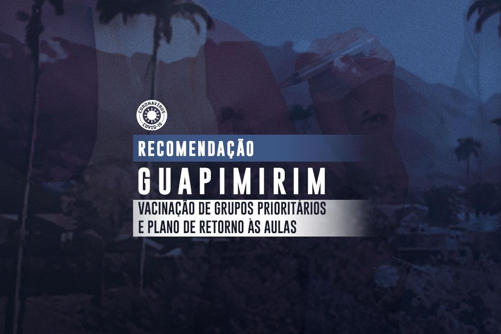 O Ministério Público do Estado do Rio de Janeiro (MPRJ), por meio da 1ª Promotoria de Justiça de Tutela Coletiva de Magé, encaminhou, nesta sexta-feira (12/02), duas Recomendações à Prefeitura de Guapimirim. A primeira determina que seja cumprida a ordem de prioridade da vacinação contra o novo coronavírus, com a criação de link no portal da Prefeitura contendo os principais dados necessários para o seu acompanhamento. A segunda, para que seja elaborado um Plano de Ação voltado para a retomada segura das atividades escolares presenciais. Em ambas as Recomendações, foi dado prazo de cinco dias para que a Prefeitura se manifeste.