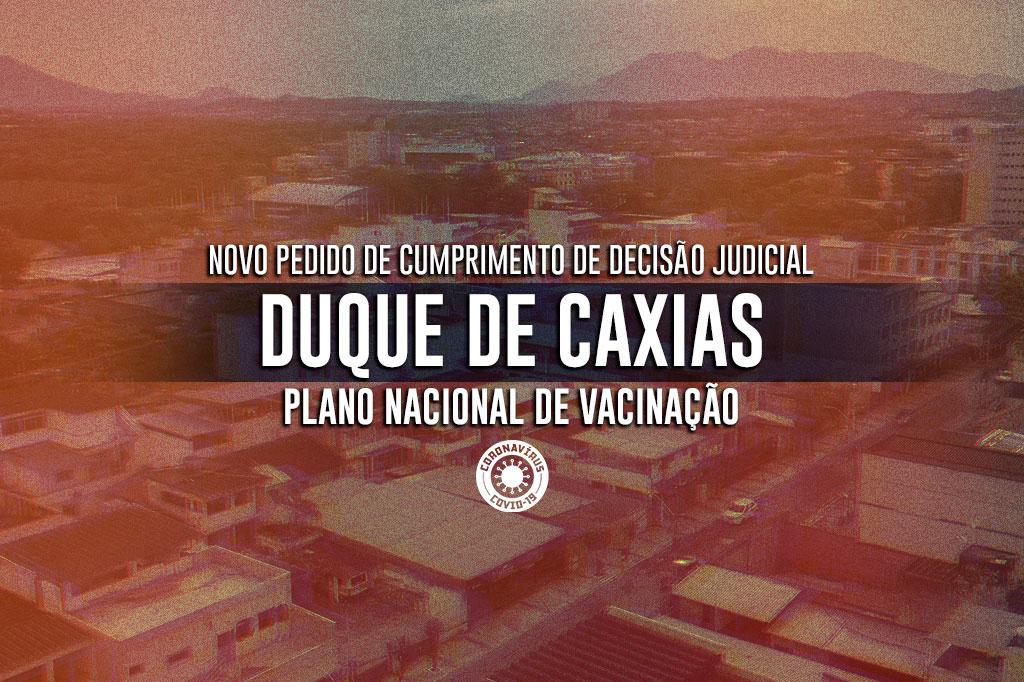 Requer o MPRJ uma nova intimação pessoal do Prefeito de Duque de Caxias, do Secretário Municipal de Saúde e da Subsecretária de Saúde responsável pela campanha de vacinação contra Covid-19 para que, sob pena da prática do crime de desobediência e de ato de improbidade administrativa, obedeçam, entre outros itens, ao Plano Nacional de Operacionalização contra Covid-19, em especial no que diz respeito à ordem dos grupos prioritários e ao esquema vacinal.