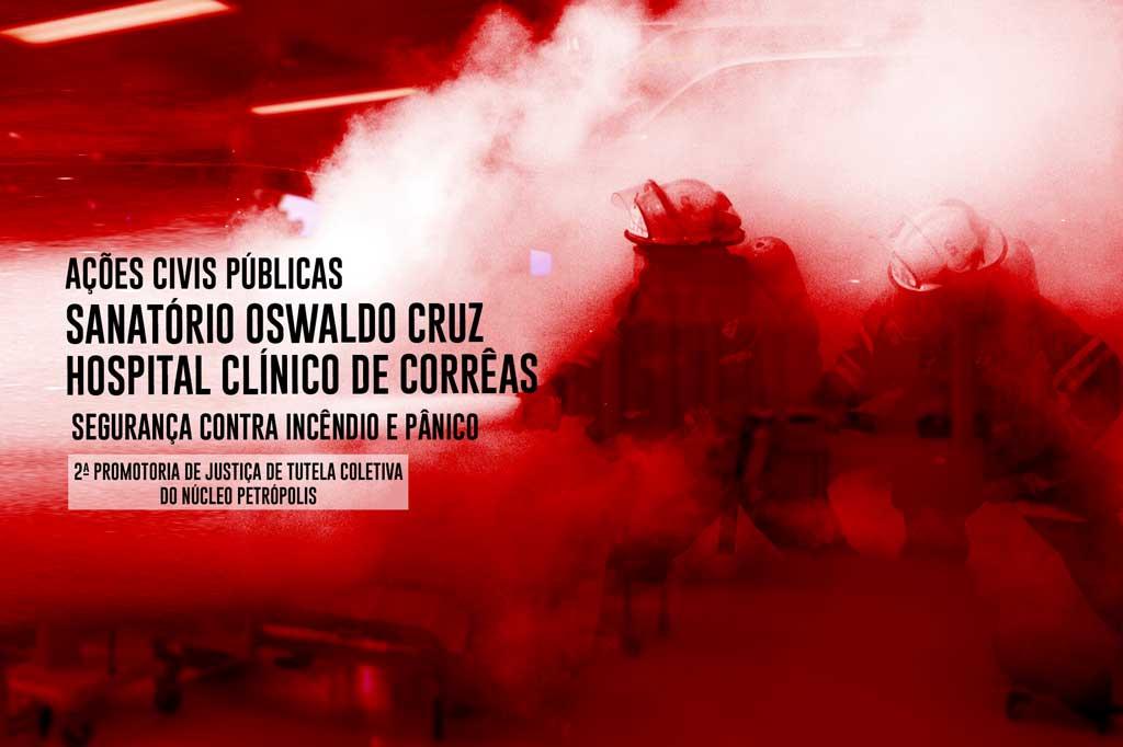 O Ministério Público do Estado do Rio de Janeiro (MPRJ), por meio da 2ª Promotoria de Tutela Coletiva do Núcleo Petrópolis, ajuizou ações civis públicas (ACP) para que o Sanatório Oswaldo Cruz e o Hospital Clínico de Corrêas elaborem, em 30 dias, projetos de segurança contra incêndio e pânico por empresa certificada.