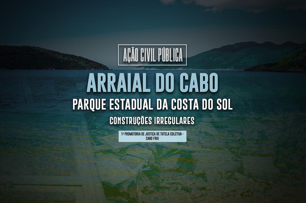 O Ministério Público do Estado do Rio de Janeiro (MPRJ), por meio da 1ª Promotoria de Justiça de Tutela Coletiva do Núcleo Cabo Frio, ajuizou ação civil pública em face do Governo do Estado do Rio, do Instituto Estadual do Ambiente (INEA), da Prefeitura de Arraial do Cabo e de donos não identificados de cerca de 96 casas irregulares construídas no Parque Estadual da Costa do Sol, no Distrito de Sabiá, em Arraial do Cabo. A ação pede a desocupação e a demolição dos imóveis, em um prazo máximo de 180 dias.