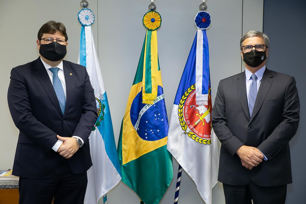 O procurador-geral de Justiça, Luciano Mattos, recebeu a visita do presidente do Tribunal de Justiça do Estado do Rio (TJ-RJ), Henrique Carlos de Andrade Figueira, na sede da instituição nesta quarta-feira (23/06). No encontro, foram discutidas pautas institucionais de interesse do MPRJ e da magistratura.