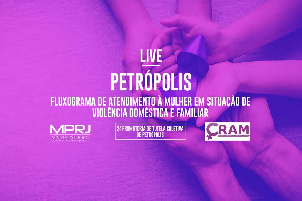 O Ministério Público do Estado do Rio de Janeiro (MPRJ), por meio da 2ª Promotoria de Tutela Coletiva de Petrópolis, com apoio da Comissão dos Direitos da Mulher da Câmara Municipal e do Conselho Municipal dos Direitos da Mulher (CRAM), realiza, nesta quarta (15/12) às 18 horas, a live "Fluxograma de atendimento à mulher em situação de violência doméstica e familiar". O evento contará com a participação da titular da 2ª Promotoria de Tutela Coletiva de Petrópolis, promotora de Justiça Vanessa Katz, da superintendente de Atenção à Saúde, Cláudia Respeita; da advogada e coordenadora do Centro de Referência de Atendimento à Mulher (CRAM), Ana Luiza Franco; e da assistente social Olívia Leal David, também integrante do CRAM.