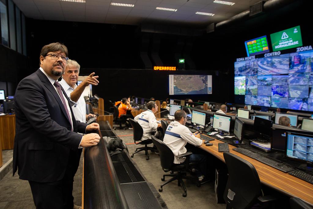 O procurador-geral de Justiça, Luciano Mattos, fez uma visita de cortesia, nesta quinta-feira (17/03), às instalações do Centro de Operações Rio, órgão que reúne as principais estruturas da prefeitura do Rio de Janeiro, no bairro do Estácio. Recebido pelo Chefe Executivo de Resiliência e Operações do município, Alexandre Cardeman, o PGJ assistiu a uma apresentação sobre os serviços prestados pelo órgão municipal e ressaltou a importância da interlocução entre os entes públicos.