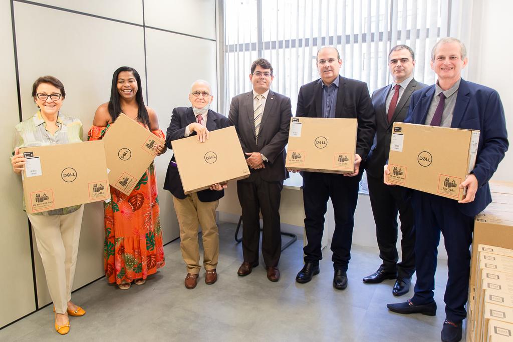 O Ministério Público do Estado do Rio de Janeiro (MPRJ), em esforço conjunto com a Fundação Getúlio Vargas, entregou, na manhã desta sexta-feira (11/03), 60 laptops novos, ao Governo do Estado do Rio, por meio da Secretaria de Estado de Educação (SEEDUC), e a fundações de assistência a carentes da rede pública estadual de ensino. Esse é o segundo ato de doação feito pelo MPRJ às fundações que prestam serviços sociais no estado. No mês passado, 40 computadores foram entregues à Prefeitura de Petrópolis. A ação é fruto de um acordo firmado entre a 1ª Promotoria de Justiça de Fundações, a 3ª Promotoria de Tutela Coletiva de Defesa da Cidadania da Capital e a FGV, que estabeleceu, entre outros compromissos, a entrega de notebooks.