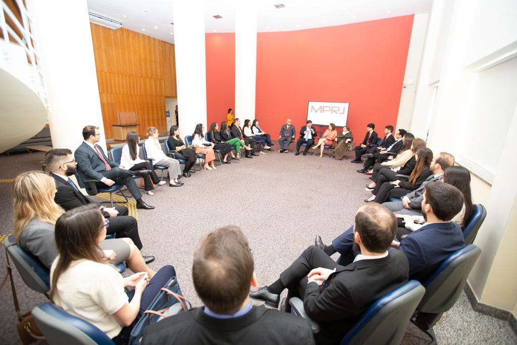 O procurador-geral de Justiça, Luciano Mattos, recebeu, na manhã desta quarta-feira (31/08), os 25 candidatos aprovados na fase oral do XXXVI Concurso Público para ingresso na classe inicial da Carreira do Ministério Público do Estado do Rio de Janeiro (MPRJ). Em um bate-papo informal, o PGJ falou sobre os desafios da instituição, as estruturas de apoio e as novas ferramentas tecnológicas desenvolvidas pela instituição para o aprimoramento da atuação do MPRJ em resposta às demandas da sociedade. A presidente da Comissão de Concurso, Maria Cristina Palhares dos Anjos Tellechea, o chefe de gabinete, David Francisco de Faria, e a promotora de Justiça Gláucia Santana, também estiveram presentes no encontro.