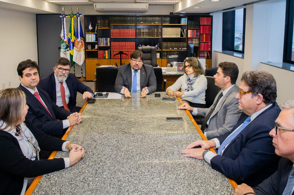 O procurador-geral de Justiça, Luciano Mattos, recebeu em seu gabinete, na tarde desta segunda-feira (05/09), a visita de Luciano Bandeira, presidente da Ordem dos Advogados do Brasil seccional Rio de Janeiro (OAB-RJ) para uma conversa sobre o tema intolerância religiosa. Também participaram da reunião a procuradora de Justiça Patricia Carvão, coordenadora-geral da Coordenadoria de Promoção da Dignidade da Pessoa Humana (COGEPDPH/MPRJ); a delegada Débora Rodrigues, titular da Delegacia de Crimes Raciais e Delitos de Intolerância (DECRADI); o presidente da Comissão de Combate à Intolerância Religiosa da OAB/RJ, Arnon Velmovitsky; o secretário-geral da Comissão, Leonardo Iori; o integrante da Comissão, Luiz Felipe Conde; o deputado estadual Átila Nunes e o vereador Átila Alexandre Nunes Pereira.