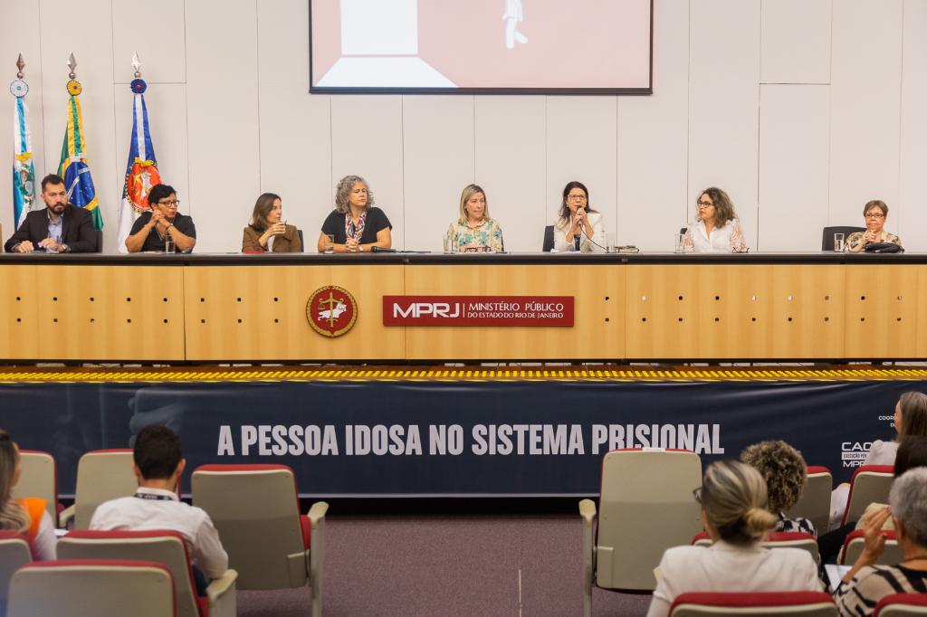 A exposição dos dados foi mediada pela coordenadora do CAO Idoso, a promotora de Justiça Cristiane Branquinho. Ao seu lado, compondo a mesa de abertura, as procuradoras de Justiça, Patrícia Carvão, Eliane Pereira e Patrícia Glioche, coordenadoras do COGEPDPH/MPRJ, da CDHM/MPRJ e do CAO EXECUÇÃO PENAL, respectivamente; a secretária de Administração Penitenciaria do Rio de Janeiro (SEAP), Maria Rosa Lo Duca Nebel, o defensor público Daniel Diamantaras , a Professora Cecília Minayo (Fiocruz) e a Coordenadora de Extensão e Pesquisa da Unati/UERJ e Presidente do Departamento de Gerontologia da SBGG, Sandra Rabello. Na plateia, membros e servidores do MPRJ, atuantes na área de Execução Penal; da Defensoria Pública, além de representantes de diversos setores do governo e da sociedade civil ligados ao tema SMSRJ, SMASDH, SEDSDH, Mecanismo. O evento foi realizado no auditório do complexo sede do MPRJ, no Centro do Rio.