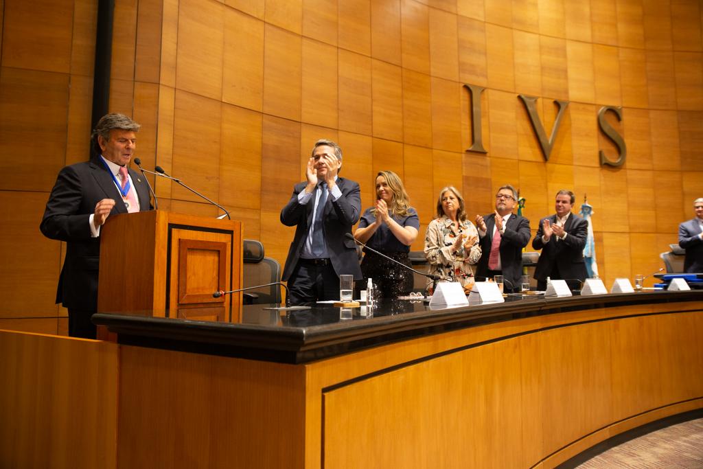 O procurador-geral de Justiça em exercício, Antonio José Campos Moreira, participou, na noite desta quinta-feira (17/11), de uma cerimônia em homenagem ao ministro do Supremo Tribunal Federal (STF), Luiz Fux, realizada no Tribunal de Justiça do Estado do Rio de Janeiro (TJ-RJ). A homenagem, em reconhecimento à gestão do ministro na presidência do STF, entre setembro de 2020 e setembro de 2022, foi realizada pelo TJ-RJ, Assembleia Legislativa do Estado (Alerj), Câmara Municipal do Rio de Janeiro, Associação dos Magistrados Brasileiros (AMB), Ordem dos Advogados do Brasil, seccional Rio (OAB-RJ), Associação dos Magistrados do Rio (AMAERJ) e Instituto dos Advogados Brasileiros (IAB).