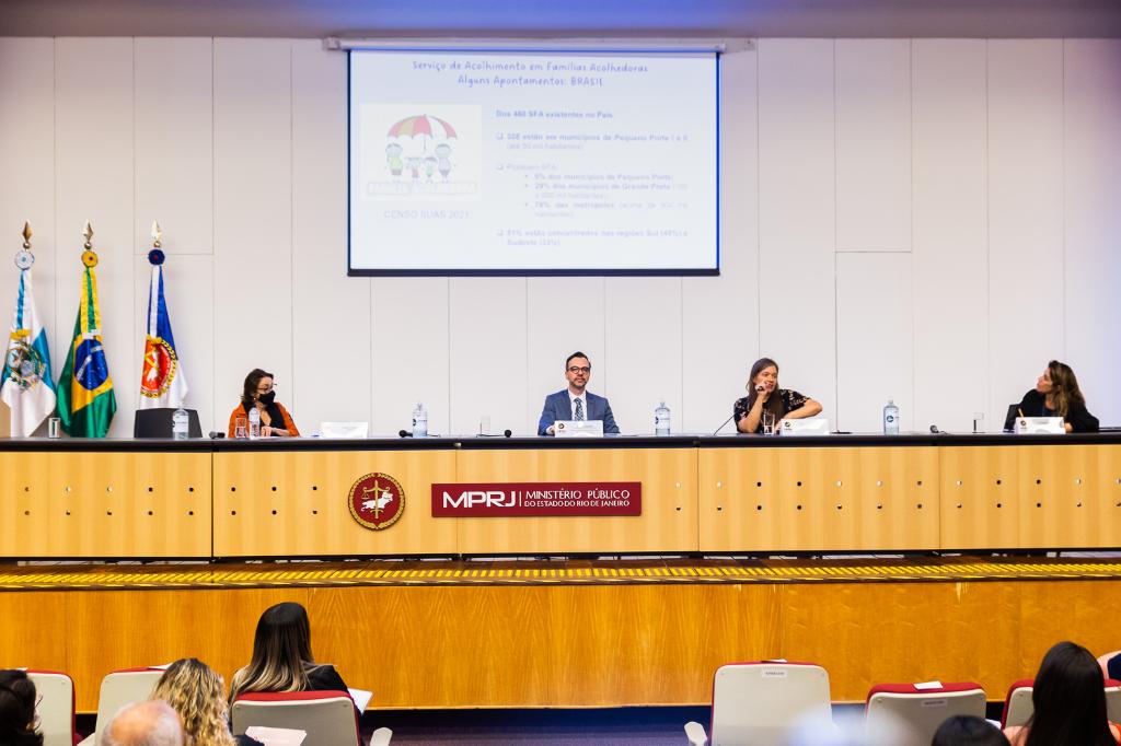 Nos painéis da parte da manhã palestraram as promotoras de Justiça da Infância e da Juventude, Danielle Silva de Carvalho e Luciana Pereira Grumbach; diretora executiva da Associação Terra dos Homens, Cláudia Cabral; as assessoras da Secretaria Nacional de Assistência Social do Ministério da Cidadania Ana Angélica Campelo de Albuquerque e Melo e Natália Figueiredo; a fundadora do Instituto Fazendo História, Cláudia Vidigal; a coordenadora do Serviço de Acolhimento Familiar de Volta Redonda, Ana Cláudia de Lima Rodrigues.