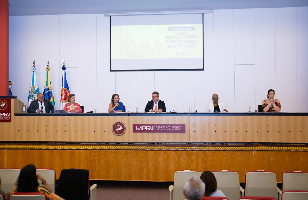 O Ministério Público do Estado do Rio de Janeiro (MPRJ), por meio do Centro de Apoio Operacional das Promotorias de Justiça de Tutela Coletiva de Proteção à Educação (CAO Educação/MPRJ) e do Instituto de Educação Roberto Bernardes Barroso (IERBB/MPRJ), em parceria com a Universidade Federal Fluminense (UFF), promoveu, na quarta-feira (07/12), o seminário Desafios e Perspectivas Políticas e Pedagógicas da Educação de Jovens e Adultos (EJA) Pós Pandemia, realizado no auditório do edifício-sede da instituição.