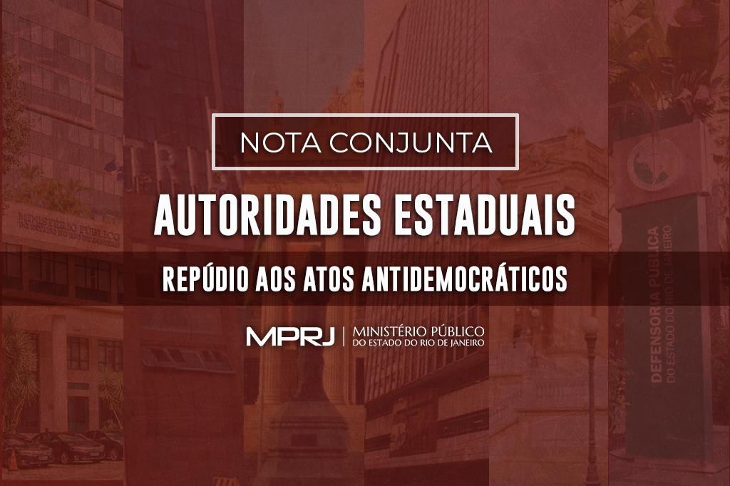 O Ministério Público do Estado do Rio de Janeiro (MPRJ) assinou nota conjunta com o Governo do Estado, o Tribunal de Justiça (TJRJ), a Assembleia Legislativa (Alerj), a Defensoria Pública (DPRJ) e o Tribunal Regional Federal da 2ª Região (TRF2) em repúdio aos violentos atos cometidos contra o regime democrático brasileiro no domingo (08/01) em Brasília.