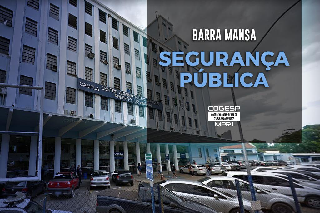 O Ministério Público do Estado do Rio de Janeiro (MPRJ), por meio da Coordenadoria-Geral de Segurança Pública (COGESP/MPRJ), apresentou, no dia 02/02, um projeto de Segurança Pública à prefeitura de Barra Mansa. A apresentação visou a explicar para autoridades locais o funcionamento dos órgãos estratégicos que compõem o projeto, que tem por objetivo o aprimoramento da gestão de dados do município com foco no diagnóstico das necessidades locais na área de segurança.