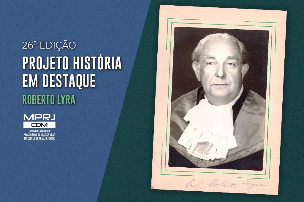 O Ministério Público do Estado do Rio de Janeiro (MPRJ), por meio do Centro de Memória Procurador de Justiça João Marcello de Araújo Júnior (CDM/MPRJ), homenageia, na 26ª edição do projeto “História em Destaque”, o promotor de Justiça Roberto Lyra (1902-1982). A fotografia de Lyra faz parte do acervo da Associação do Ministério Público do Estado do Rio de Janeiro (AMPERJ), emprestado ao CDM com a finalidade de fornecer material iconográfico que remonte a história institucional do MPRJ.