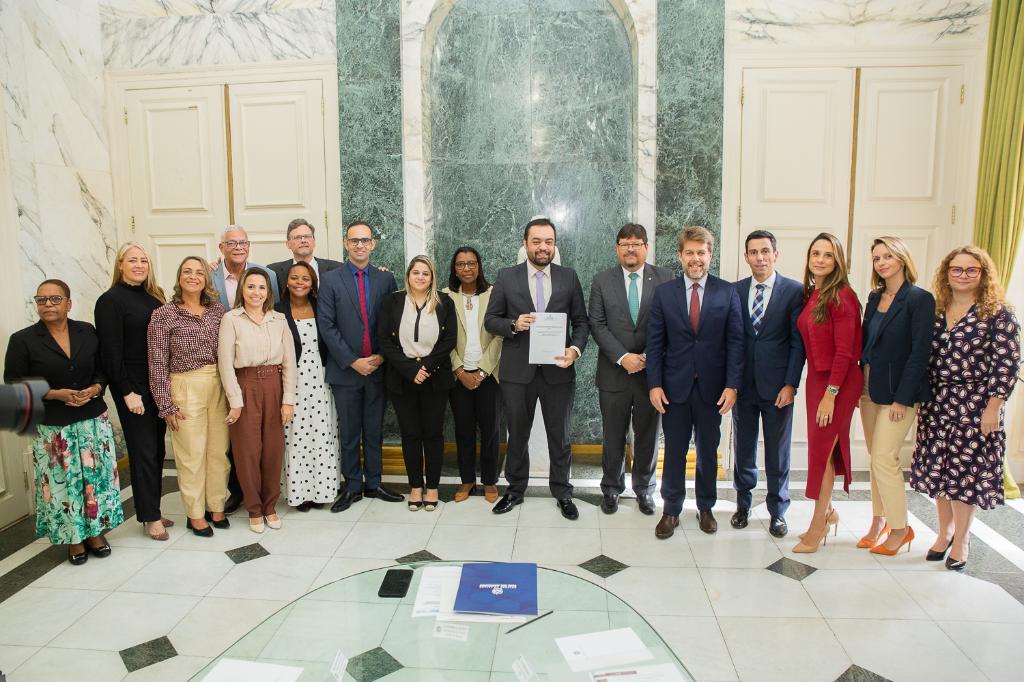 O procurador-geral de Justiça, Luciano Mattos, participou, nesta quinta-feira (18/05), com o governador Cláudio Castro e com a secretária de Desenvolvimento Social e Direitos Humanos do Estado, Rosangela Gomes, da solenidade de assinatura do Plano Estadual de Reordenamento do Serviço de Acolhimento Institucional para Jovens e Adultos com Deficiência, no Palácio Guanabara, em Laranjeiras. O plano tem por base a implementação de Residências Inclusivas, unidades que ofertam Serviço de Acolhimento Institucional, no âmbito da Proteção Social Especial de Alta Complexidade do Sistema Único de Assistência Social (SUAS), para jovens e adultos com deficiência, em situação de dependência, que não disponham de condições de autossustentabilidade ou de retaguarda familiar.