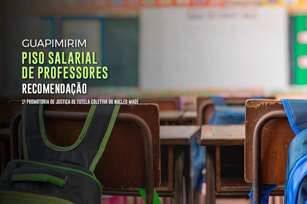 O Ministério Público do Estado do Rio de Janeiro (MPRJ), por meio da 1ª Promotoria de Justiça de Tutela Coletiva do Núcleo Magé, expediu Recomendação para que o Município de Guapimirim adote o piso salarial nacional como referência para o pagamento da remuneração e para o Plano de Carreira dos profissionais de educação básica do município. O valor atualmente é de R$ 4.220,50 para a carga horária de 40 horas semanais, conforme atualização promovida pela Portaria MEC 17/2023.