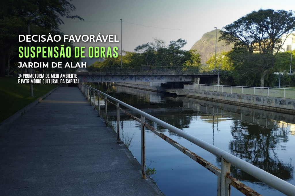 A pedido do Ministério Público do Estado do Rio de Janeiro (MPRJ), por meio da 1ª Promotoria de Justiça de Meio Ambiente e Patrimônio Cultural da Capital, a 6ª Vara de Fazenda Pública da Capital manteve, nesta quinta-feira (25/04), a liminar que impede o início das obras no Jardim de Alah.
