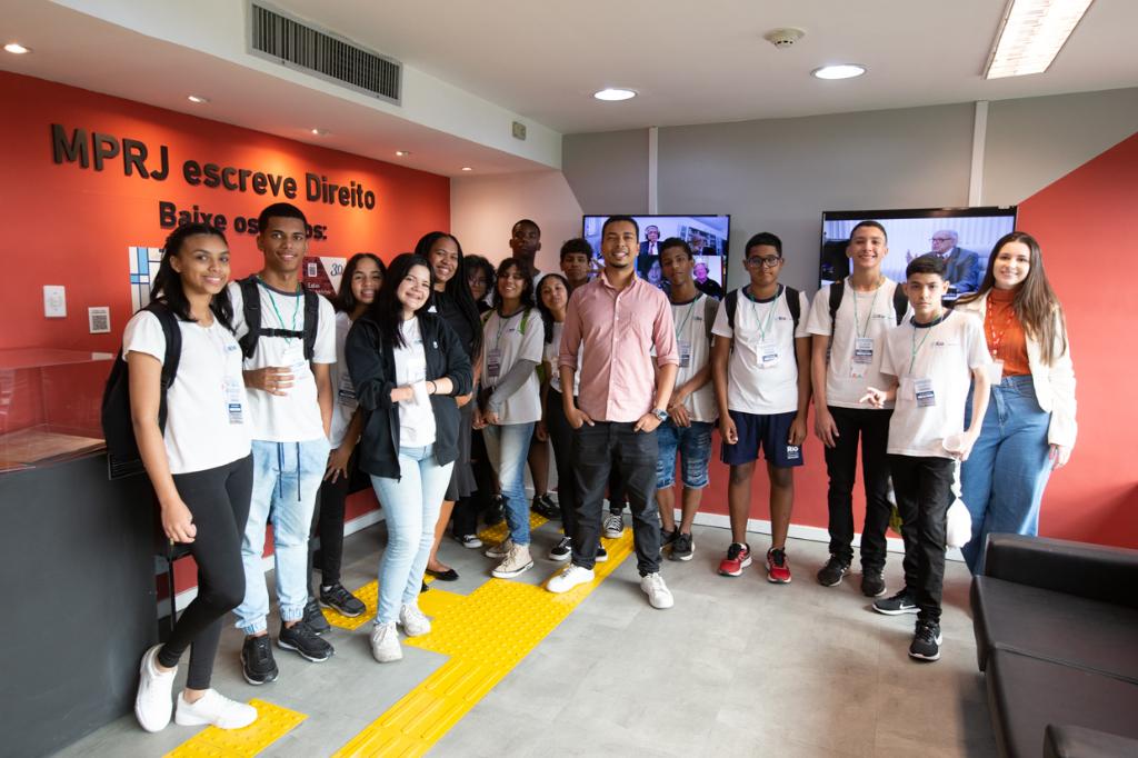 O Ministério Público do Estado do Rio de Janeiro (MPRJ), por meio do Centro de Memória Procurador de Justiça João Marcello de Araújo Júnior (CDM/MPRJ), recebeu os alunos do CIEP Carlos Drummond de Andrade, para uma visita guiada à sua sede. O passeio realizado nesta quinta-feira (27/06) é parte do projeto Calçada da Cidadania, uma iniciativa conjunta do MPRJ com a Ordem dos Advogados do Brasil do Rio de Janeiro (OAB-RJ), o Instituto dos Advogados Brasileiros (IAB) e a Defensoria Pública, que tem como objetivo apresentar o sistema judicial para estudantes do ensino médio e fundamental.