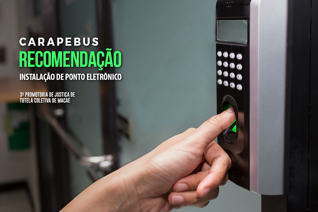 O Ministério Público do Estado do Rio de Janeiro (MPRJ), por meio da 3ª Promotoria de Justiça de Tutela Coletiva de Macaé, expediu Recomendação, nesta quarta-feira (11/09), para que o Município de Carapebus, em um prazo máximo de 60 dias, providencie a instalação e o regular funcionamento do ponto eletrônico de frequência em todos os ambientes que contam com funcionários públicos vinculados ao Poder Executivo local. Atualmente, o controle de ponto dos servidores públicos da Câmara Municipal de Carapebus é feito por meio do ponto manual com registro em folha.