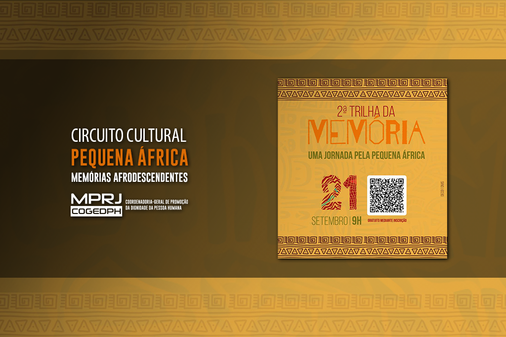 A Coordenadoria-Geral de Promoção da Dignidade da Pessoa Humana do Ministério Público do Estado do Rio de Janeiro (COGEDPH/MPRJ) e o Núcleo de Gênero do Tribunal de Justiça do Estado do Rio de Janeiro (TJRJ) anunciam a segunda edição da Trilha da Memória - Uma Jornada pela Pequena África. O evento ocorrerá no dia 21 de setembro, com início às 9h, tendo como ponto de encontro o Museu de Arte do Rio, situado na Praça Mauá.