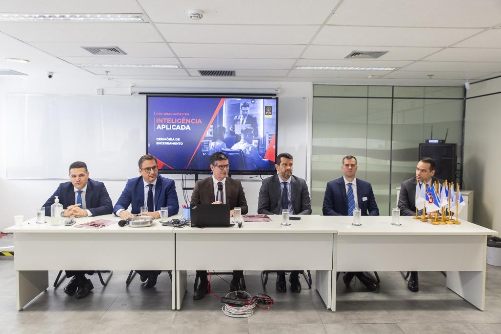 Ao final da celebração, os concluintes foram chamados à mesa e receberam Insígnias como forma de simbologia e dever de responsabilidade ao Ministério Público. Na cerimônia também foi feita uma homenagem ao Coronel Romeu Antonio Ferreira, um dos grandes nomes da inteligência no Brasil, que foi professor e muito contribuiu na estruturação do curso.