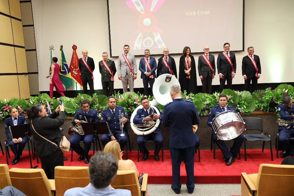 O Ministério Público Militar (MPM) realizou, nesta quarta-feira (13/11), no auditório Subprocuradora-Geral Adriana Lorandi, da Procuradoria-Geral de Justiça Militar, em Brasília/DF, a cerimônia de outorga da comenda da Ordem do Mérito MPM 2024. Foram condecoradas 133 personalidades que prestaram relevantes serviços ao Ministério Público Militar, à sociedade e ao país. Entre os homenageados com o grau Grã-Cruz, destaca-se o corregedor nacional do Ministério Público (CNMP), Ângelo Fabiano Farias da Costa.