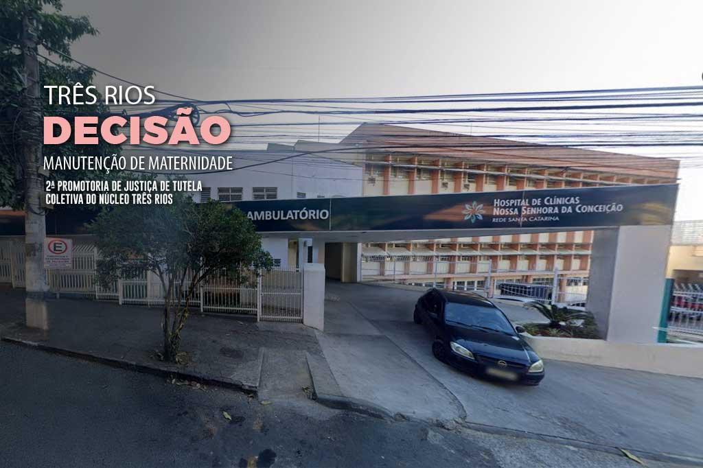 O Ministério Público do Estado do Rio de Janeiro (MPRJ), por meio da 2ª Promotoria de Justiça de Tutela Coletiva do Núcleo Três Rios, obteve, nesta sexta-feira (22/11), decisão liminar determinando que o Município de Três Rios e o Hospital de Clínicas Nossa Senhora da Conceição (HCNSC) mantenham a maternidade em funcionamento, em caráter emergencial, por mais 90 dias. A ação civil pública requerendo a manutenção dos serviços foi ajuizada depois que a direção do HCNSC anunciou o fechamento da maternidade do hospital no próximo domingo (24/11), alegando desequilíbrio econômico-financeiro do contrato firmado com o município. O Juízo da 2ª Vara de Três Rios estabeleceu multa diária de R$ 10 mil para o caso de descumprimento.