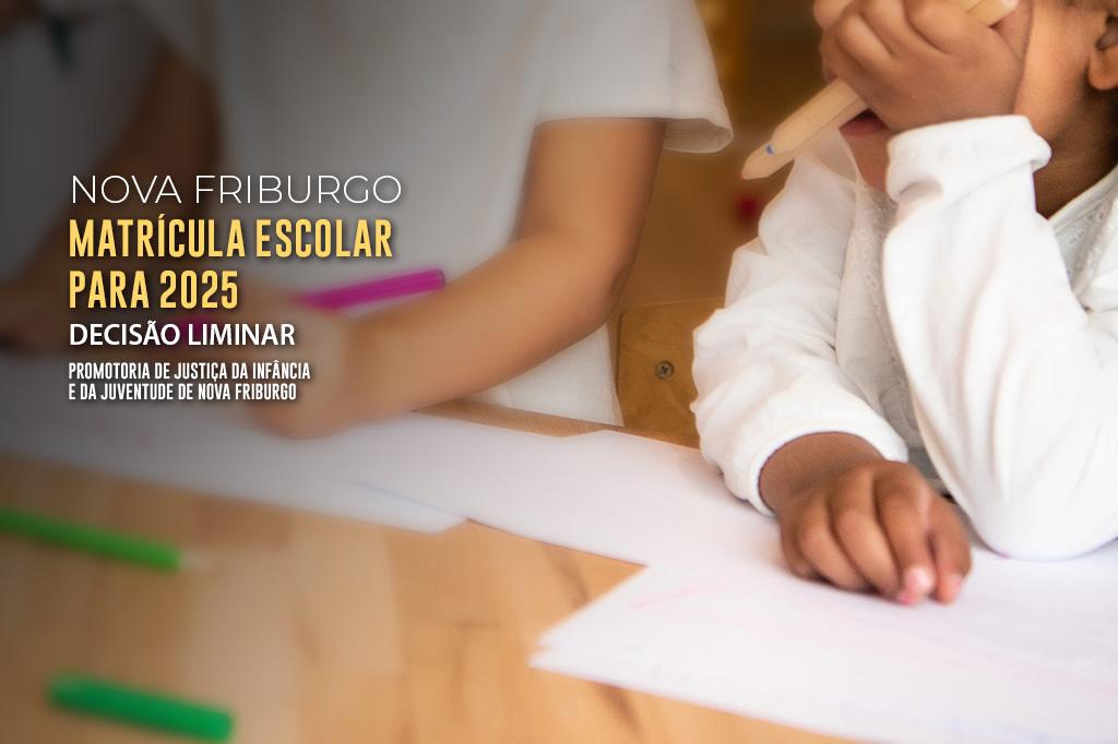 O Ministério Público do Estado do Rio de Janeiro (MPRJ) obteve, na sexta-feira (29/11), decisão liminar na Justiça que obriga o município de Nova Friburgo a reabrir o período de matrícula escolar para o ano de 2025, ofertando o mesmo número de vagas existentes para o ensino infantil em período integral para o Pré-escolar I e II, tal como foi oferecido em 2024. A decisão foi obtida em ação civil pública ajuizada pela Promotoria de Justiça da Infância e da Juventude de Nova Friburgo.