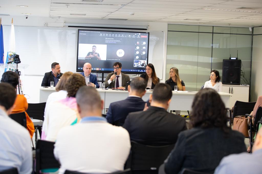 A mesa de abertura discutiu a importância do atendimento às mulheres, sobretudo, às gestantes e puérperas inseridas no sistema prisional, e os avanços nas políticas voltadas à saúde para esse público no Rio de Janeiro. Compuseram a mesa o promotor de Justiça Tiago Joffily; a defensora pública Alessandra Nascimento da Rocha; a psicóloga Graziela Contessoto Sereno, representando o Comitê Estadual de Prevenção e Combate à Tortura do Rio de Janeiro (CEPCT); o médico obstetra Antônio Rodrigues Braga Neto, representando a Secretaria de Estado de Saúde do Rio de Janeiro (SES); o superintendente de Maternidades, Márcio Ferreira, representando a Secretaria Municipal de Saúde (SMS-Rio); e a policial penal Aline Camilo, representando a Secretaria de Estado de Administração Penitenciária do Rio de Janeiro (SEAP).