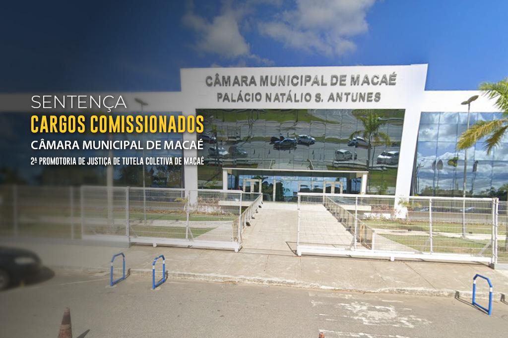 O Ministério Público do Estado do Rio de Janeiro (MPRJ), por meio da 2ª Promotoria de Justiça de Tutela Coletiva de Macaé, obteve sentença determinando que a Câmara Municipal de Macaé desocupe 132 cargos comissionados, mediante exoneração de forma escalonada. O Juízo da 2ª Vara Cível de Macaé também determinou a extinção de uma série de funções.