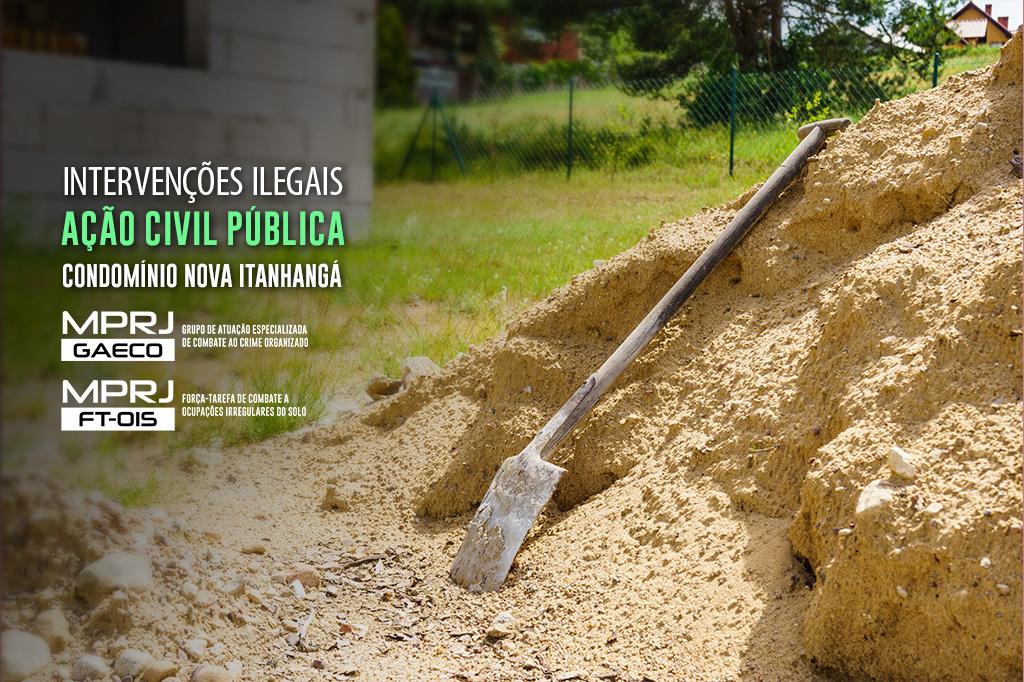 O Ministério Público do Estado do Rio de Janeiro (MPRJ), por meio da Força-Tarefa de Enfrentamento à Ocupação Irregular do Solo Urbano, do Grupo de Atuação Especializada de Combate ao Crime Organizado (GAECO/FT-OIS), ajuizou uma ação civil pública contra o Município do Rio de Janeiro, o Instituto Estadual do Ambiente (INEA), o Condomínio Nova Itanhangá, a Iguá Rio de Janeiro e quatro pessoas físicas. Na ação, a Força-Tarefa requer a interrupção das intervenções ilegais realizadas no Condomínio Nova Itanhangá, localizado na Avenida Engenheiro de Souza Filho, nº 613, na Zona Oeste do Rio.