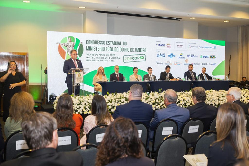 A temática do meio ambiente permeia o evento em razão da realização da COP 30 no Brasil neste ano. O procurador-geral de Justiça, Antonio José Campos Moreira, observou, na abertura, que a desatenção com questões ambientais pode gerar impactos importantes em outras áreas. Trazendo o exemplo para o Rio de Janeiro, lembrou que a ocupação irregular do solo ao longo de décadas contribuiu para o grave problema de segurança pública na cidade, uma vez que essas áreas estão sob domínio territorial de organizações criminosas.