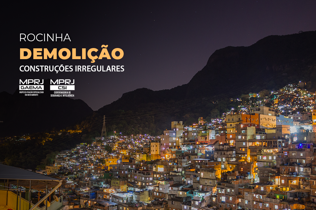 O Ministério Público do Estado do Rio de Janeiro, por meio do Grupo de Atuação Especializada em Meio Ambiente (GAEMA/MPRJ) e da Coordenadoria de Segurança e Inteligência (CSI/MPRJ), a Secretaria de Ordem Pública do Município (SEOP) e a Polícia Militar do Estado do Rio de Janeiro (PMERJ) realizam, nesta quinta-feira (26/06), uma operação conjunta para a demolição de três prédios irregulares erguidos na Rocinha. A ação tem o apoio do Ministério Público do Ceará, por meio do Grupo de Atuação Especial de Combate às Organizações Criminosas (GAECO/MPCE), e da Polícia Civil do Estado do Ceará.