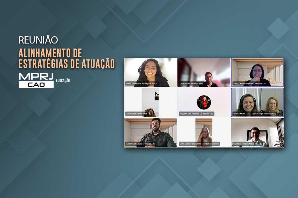 Participaram da reunião os promotores de Justiça Bianca Mota, Agnes Mussliner e Stella Fernandes Rodrigues Baltar, respectivamente coordenadora e subcoordenadoras do CAO Educação/MPRJ; Dina Velloso, Leonardo Canônico, Letícia de Paula Antunes, Gustavo Teixeira Nacarath, André Gonçalves Morgado, Charles Amitay Weksler e Maria de Lourdes Almeida da Fonseca.
