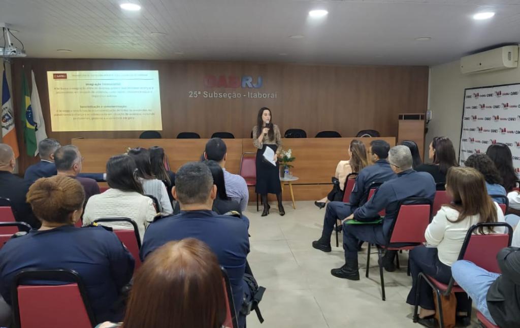 A promotora de Justiça Rhamile Sodré, titular da Promotoria de Justiça da Infância e da Juventude de Itaboraí, realizou uma palestra, no último dia 31/07, sobre a implementação, no município de Itaboraí, do Centro Integrado Especializado para atendimento de crianças e adolescentes vítimas ou testemunhas de violência. O evento ocorreu na sede da Ordem dos Advogados do Brasil (OAB), em Itaboraí.