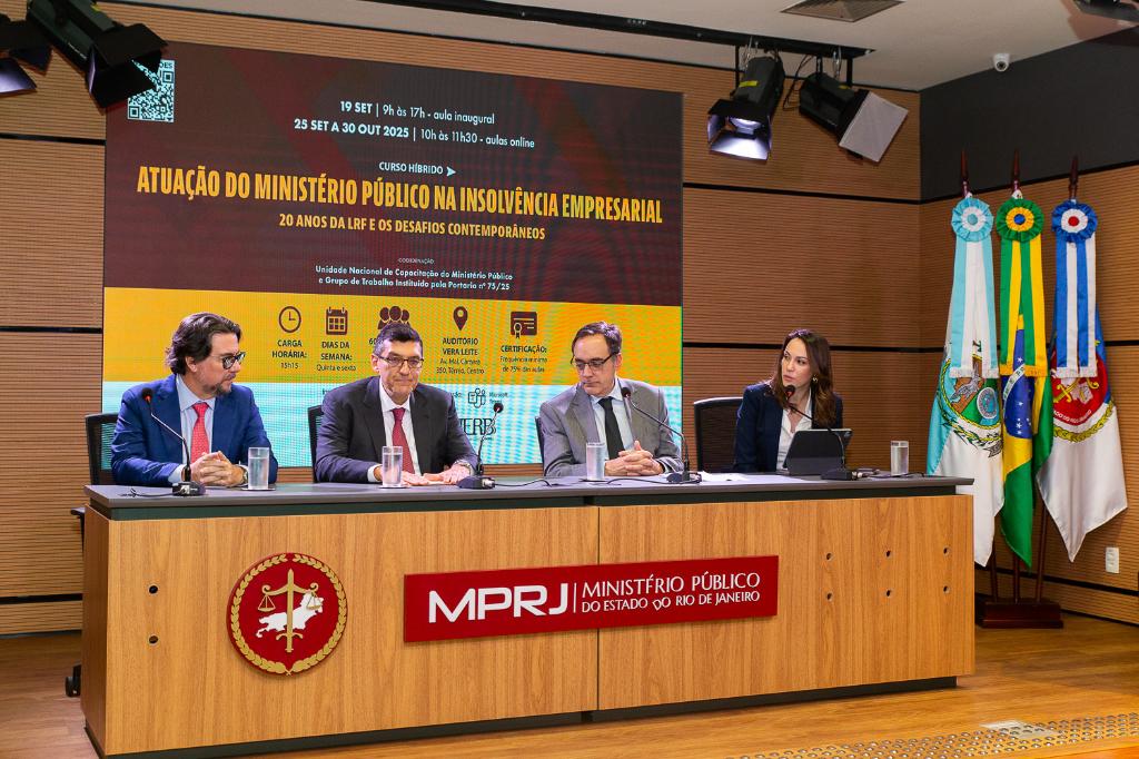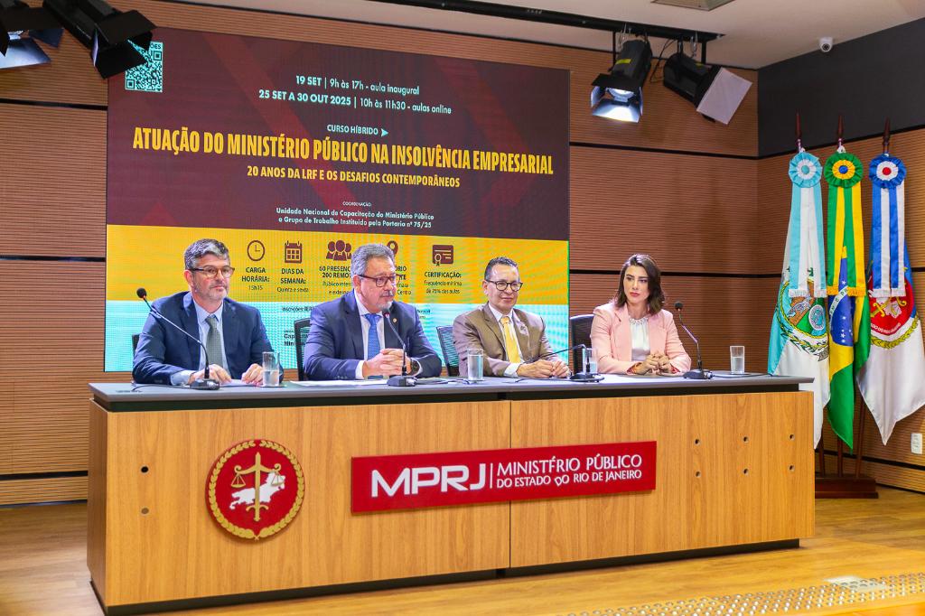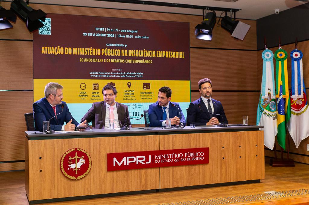O Ministério Público do Estado do Rio de Janeiro (MPRJ), por meio do Instituto de Educação Roberto Bernardes Barroso (IERBB/MPRJ), iniciou, na sexta-feira (19/09), a primeira aula do curso “Atuação do Ministério Público na Insolvência Empresarial: 20 anos da Lei de Recuperação Judicial e Falências e os Desafios Contemporâneos”, no auditório Vera Leite. Coordenado pela Unidade Nacional de Capacitação do Ministério Público e pelo Grupo de Trabalho instituído pela Portaria nº 75/25, o evento, direcionado ao público interno e externo, contou com a participação de especialistas em direito empresarial, promovendo debates sobre os avanços e desafios na área.