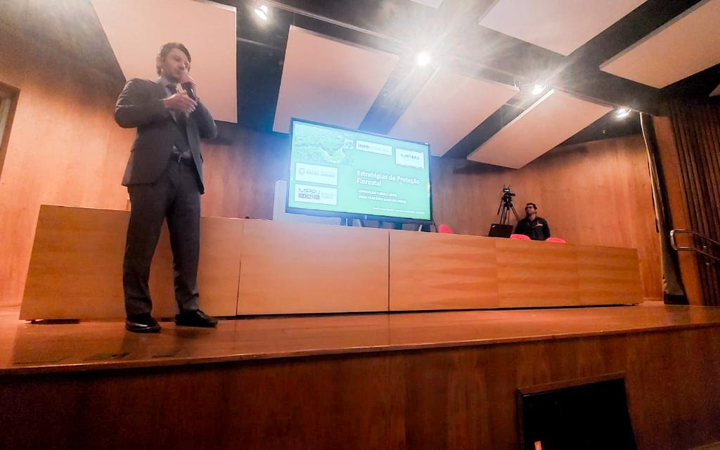 O promotor de Justiça Vinícius Lameira, coordenador do CAO Meio Ambiente e Ordem Urbanística/MPRJ, falou aos presentes sobre temas como mudanças climáticas, desmatamento e cooperação entre os órgãos do Sistema Nacional do Meio Ambiente (SISNAMA). Já o promotor de Justiça André Dickstein, subcoordenador do CAO Meio Ambiente/MPRJ e titular da 2ª Promotoria de Justiça de Tutela Coletiva do Núcleo Três Rios, palestrou sobre Mata Atlântica, serviços ecossistêmicos e fiscalização remota.