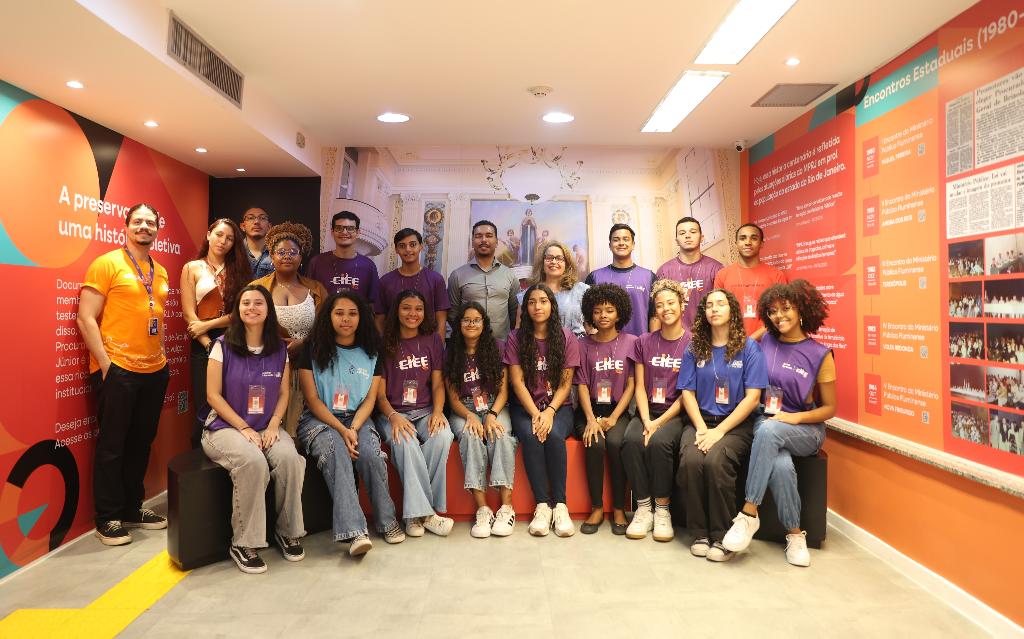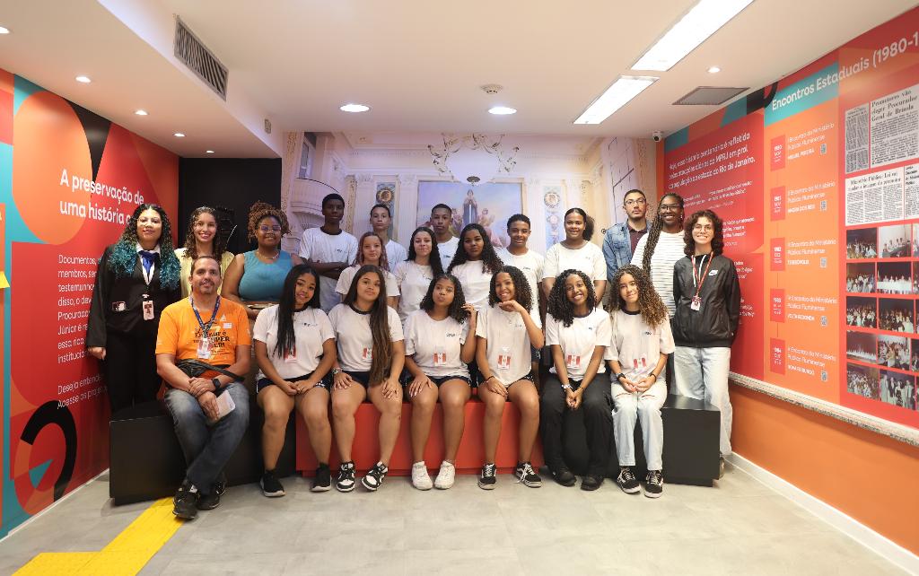 O Ministério Público do Estado do Rio de Janeiro (MPRJ), por meio do Centro de Memória Procurador de Justiça João Marcello de Araújo Júnior (CDM/MPRJ), recebeu, nesta terça-feira (14/10), mais um grupo de estudantes para uma visita guiada às exposições Congressos e Encontros: em Construção da Cidadania e O MP e o Novo Estado: os 50 anos da Fusão, localizadas no prédio da Procuradorias de Justiça. Desta vez, participaram alunos do 9º ano da Escola Municipal Alexandre Farah, situada em Ricardo de Albuquerque, Zona Norte do Rio de Janeiro.