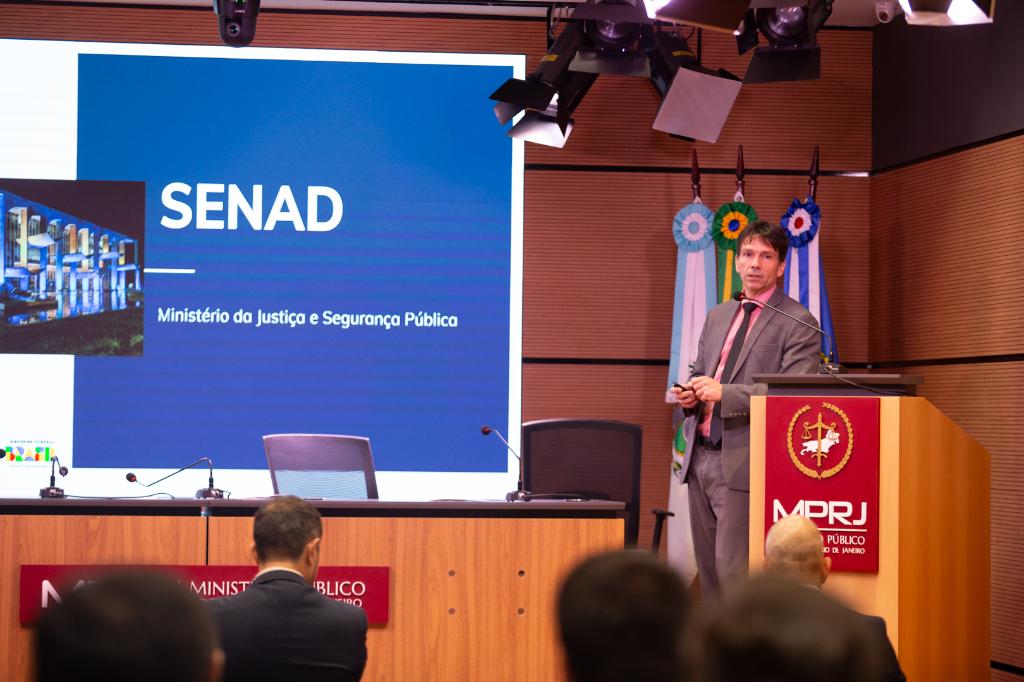 No período da tarde, foram realizadas mais cinco palestras com especialistas do Ministério da Justiça, da Polícia Federal e do Ministério Público. O diretor de Gestão de Ativos e Justiça da Secretaria Nacional de Políticas sobre Drogas e Gestão de Ativos (DGA/SENAD/MJSP), João Carlos Ambrósio, abordou as principais frentes de atuação da SENAD, destacando o papel da secretaria em temas como prevenção ao uso de drogas e à violência, produção de conhecimento e descapitalização do narcotráfico. Ambrósio detalhou o ciclo de recuperação de ativos no âmbito da SENAD, que tem início na administração dos bens apreendidos até sua alienação e destinação final. Ele também apresentou as normativas que orientam esse processo e, ao final, enfatizou algumas das políticas públicas sobre drogas.