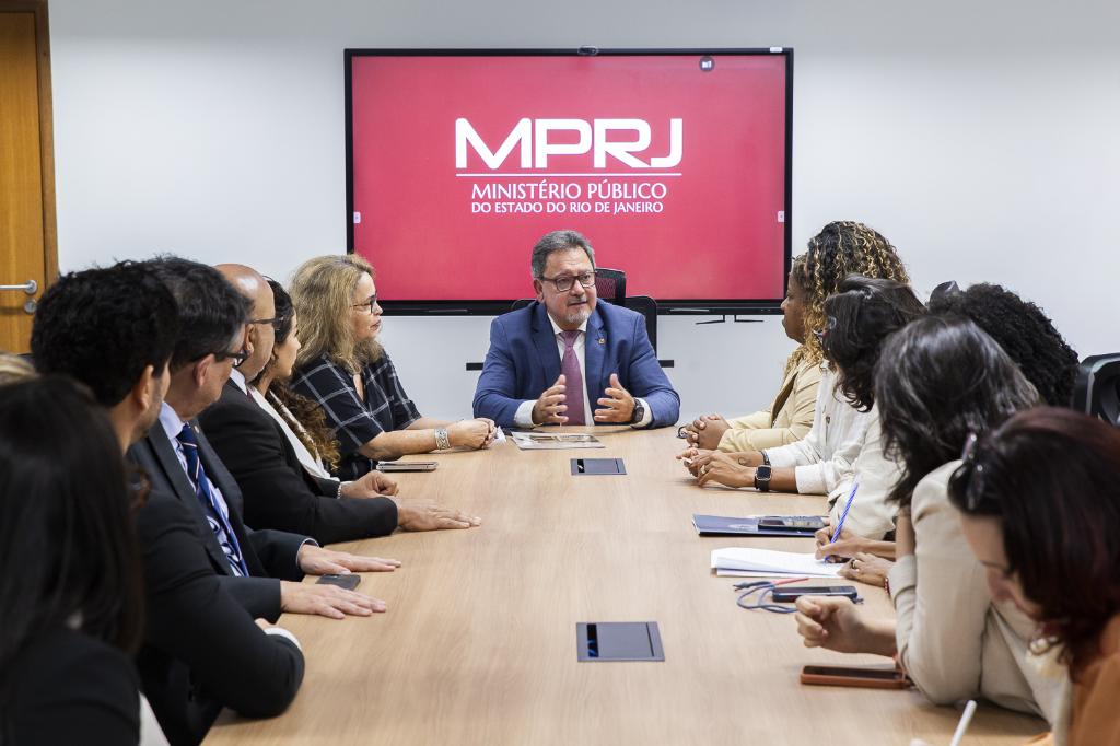 Representando o MPRJ, estiveram presentes a subprocuradora-geral de Justiça de Direitos Humanos e Proteção à Vítima (SUBDHPV/MPRJ), Patrícia Glioche; a coordenadora do Núcleo de Apoio às Vítimas, Patrícia Carvão; o coordenador de Direitos Humanos e Controle de Convencionalidade, Tiago Veras; o coordenador de Autocomposição, Victor Miceli; e as promotoras de Justiça Fernanda Vieira de Moraes (assessora) e Renata Mendes Someson Tauk (assistente). Também participaram o consultor especial Carlos Roberto de Castro Jatahy e o chefe de gabinete do PGJ, Guilherme Schueler.