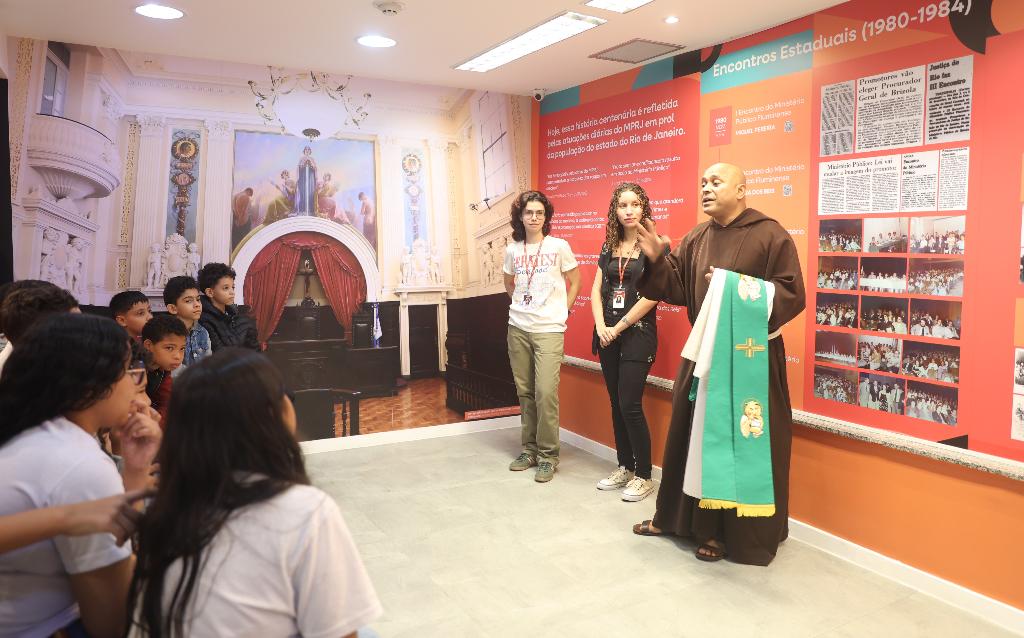 O Ministério Público do Estado do Rio de Janeiro (MPRJ), por meio do Centro de Memória Procurador de Justiça João Marcello de Araújo Júnior (CDM/MPRJ), recebeu, nesta terça-feira (04/11), alunos do Centro Integrado de Educação Pública (CIEP) Dr. Ernesto Che Guevara, de Campo Grande, para uma visita guiada à sua sede, como parte do Projeto Caminhos da Cidadania, uma iniciativa conjunta do MPRJ e do Museu Histórico Nacional.