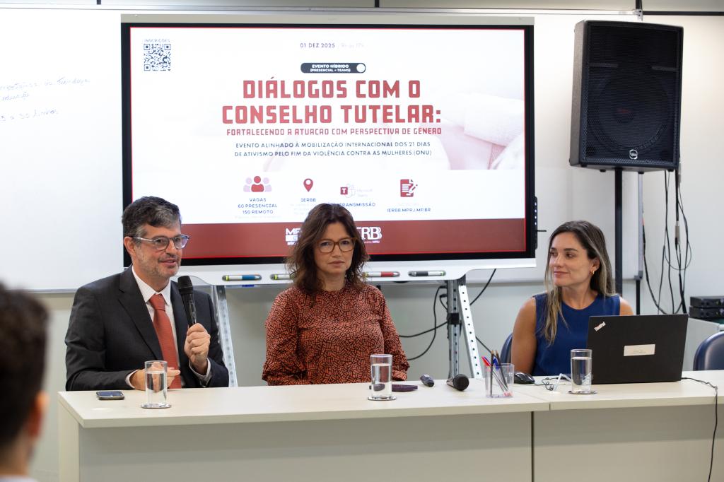 O Ministério Público do Estado do Rio de Janeiro, por meio dos Centros de Apoio Operacionais das Promotorias de Justiça da Infância e da Juventude (CAOIJ/MPRJ) e do Combate à Violência Doméstica e Familiar contra a Mulher (CAOVD/MPRJ), e do Instituto de Educação Roberto Bernardes Barroso (IERBB/MPRJ), realizou, nesta segunda-feira (01/12), o evento “Diálogos com o Conselho Tutelar: fortalecendo a atuação com perspectiva de gênero”, voltado ao aprimoramento da rede de proteção de crianças e adolescentes. A iniciativa buscou estreitar o diálogo com os Conselhos Tutelares e reforçar a importância da abordagem de gênero nas ações institucionais.