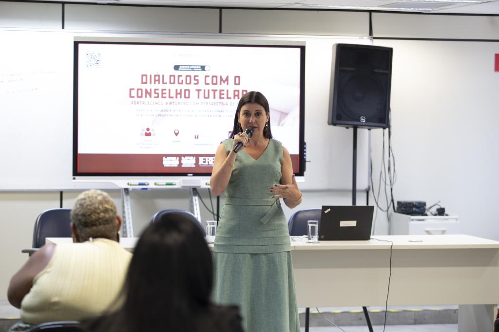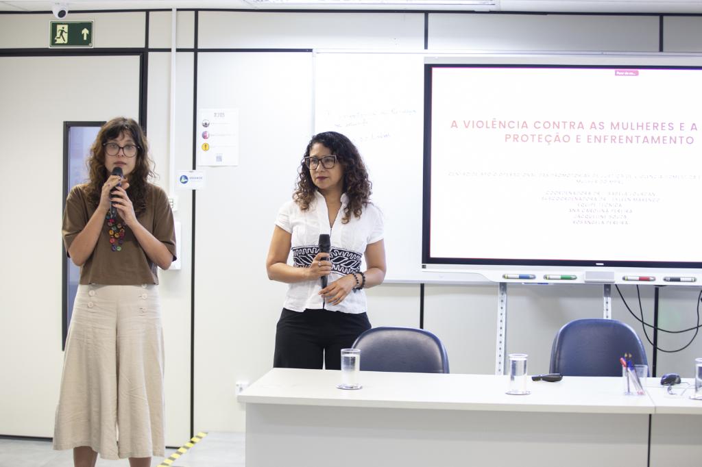 A programação da tarde apresentou o painel “Rede de Enfrentamento à Violência contra a Mulher: papéis, fluxos e articulação interinstitucional”, conduzido por Rosângela Pereira, assistente social do CAOVD, e Ana Carolina Marchesini, psicóloga do mesmo Centro de Apoio. As especialistas destacaram a importância do Conselho Tutelar nos atendimentos que envolvem mulheres com filhos menores, reforçando que criança e mãe não podem ser pensadas de forma isolada.