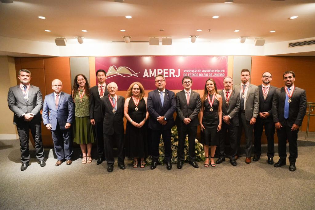 Foram agraciados com a Medalha do Mérito os procuradores de Justiça do MPRJ Maurício Assayag, Patrícia Leite Carvão e Norton Esteves Pereira de Mattos (aposentado); os promotores de Justiça Fábio Corrêa de Matos Souza, Heleno Ribeiro Pereira Nunes Filho, Sauvei Lai, Tatiana Costa Torres e Fabiano Gonçalves Cossermelli Oliveira (referente ao ano de 2024); a promotora de Justiça do MPMG Larissa Rodrigues Amaral; o promotor de Justiça do MPES Pedro Ivo de Sousa; e a procuradora do Estado Cristina Francesconi, que não pôde comparecer à cerimônia.