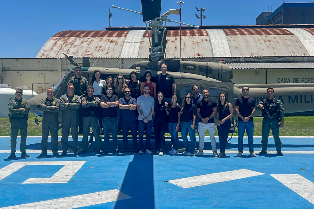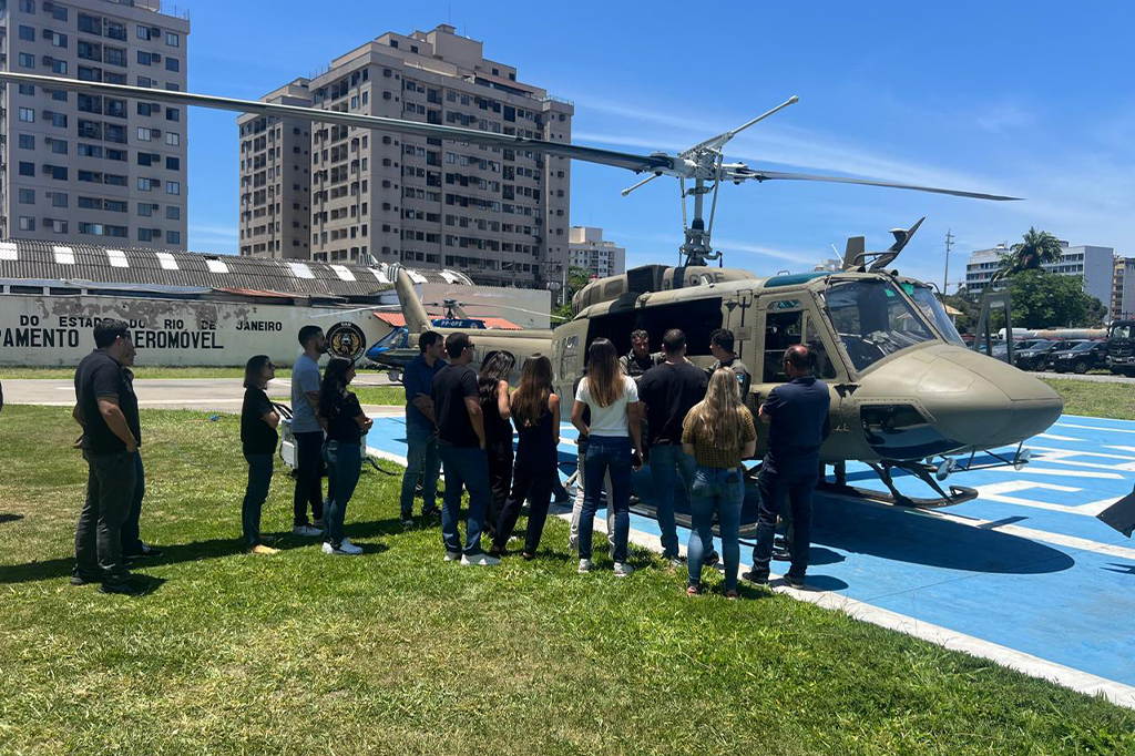 Membros do Grupo de Atuação Especializada de Combate ao Crime Organizado (GAECO/MPRJ), do Grupo de Atuação Especializada em Combate à Sonegação Fiscal (GAESF/MPRJ) e da Coordenadoria de Inteligência da Investigação (CI2/MPRJ) também participaram da visita. Eles foram recebidos pelo tenente-coronel Cláudio dos Santos Leitão, comandante do GAM, que apresentou a rotina das operações aéreas e reforçou a parceria entre as instituições, destacando o compromisso com a técnica e a segurança das ações.