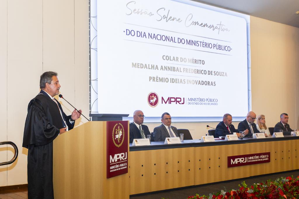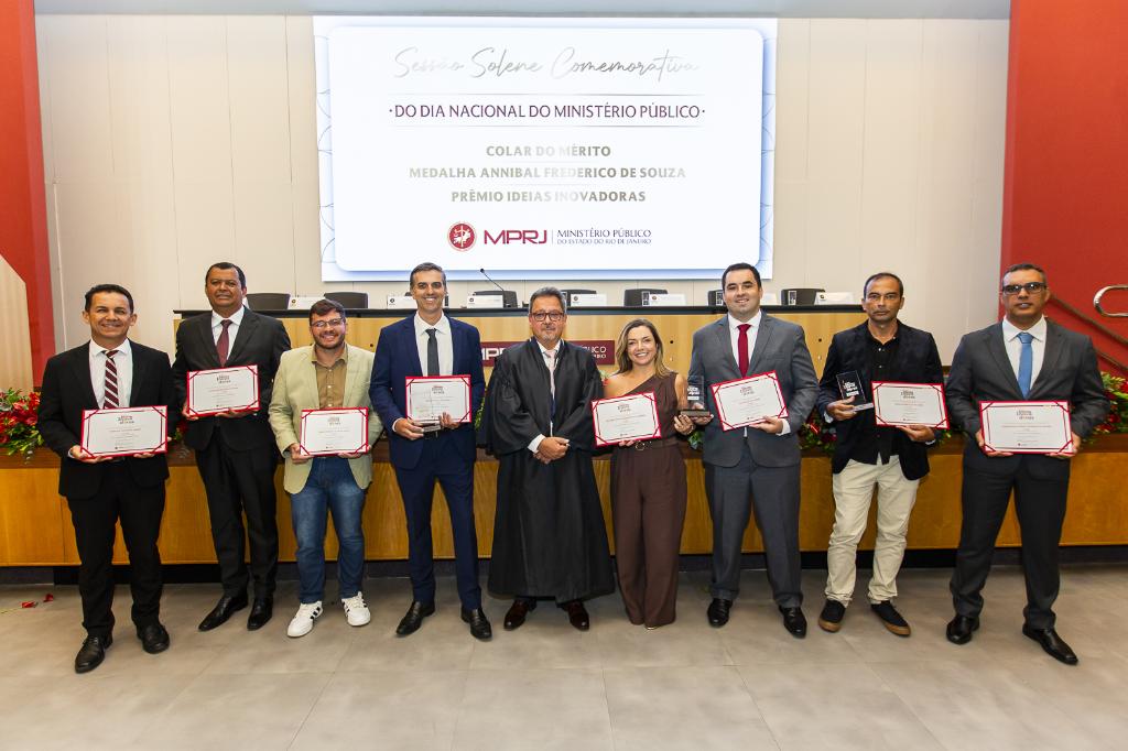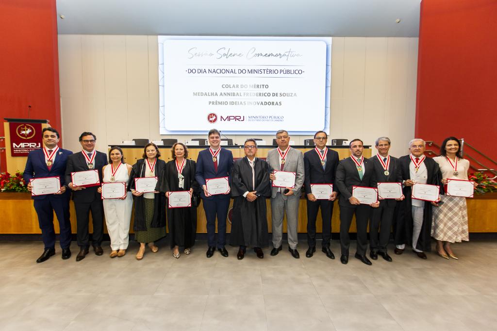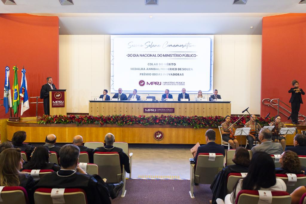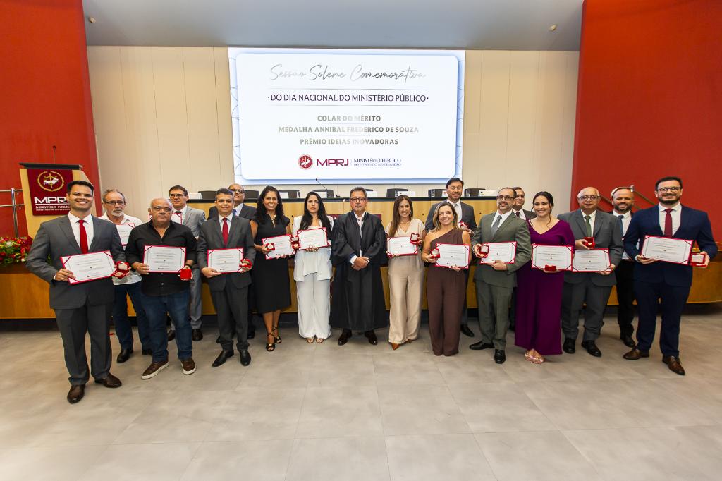 O Ministério Público do Estado do Rio de Janeiro (MPRJ) comemorou, nesta segunda-feira (15/12), o Dia Nacional do Ministério Público com a realização da sessão solene de entrega do Colar do Mérito, da Medalha Anníbal Frederico de Souza e do Prêmio Ideias Inovadoras. O evento, dedicado ao reconhecimento de personalidades e servidores que se destacaram por suas contribuições à sociedade e à instituição, foi realizado no auditório do edifício-sede. O Dia Nacional do MP é celebrado anualmente em 14 de dezembro.