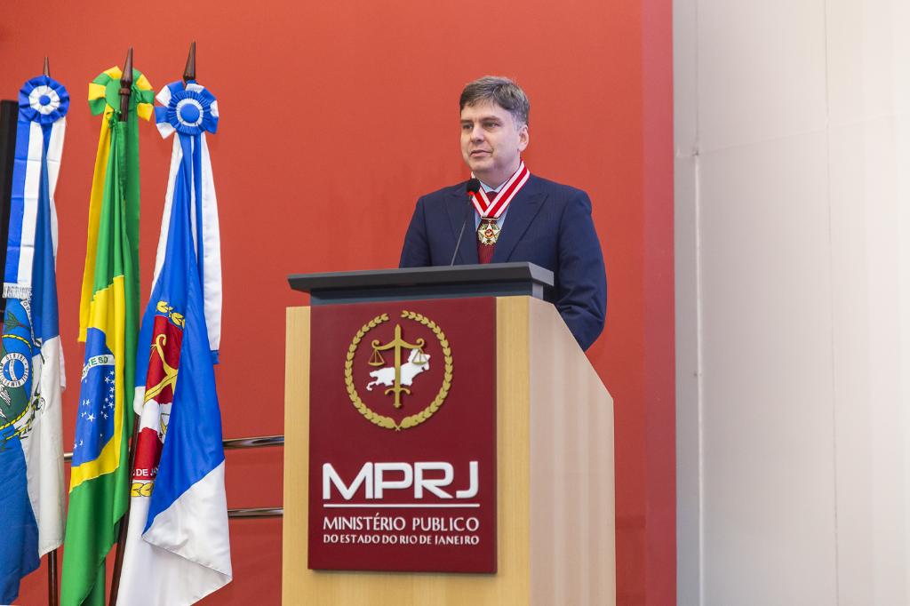 Em seu discurso, o PGJ frisou a necessidade de tratar a segurança pública como prioridade e ressaltou as estratégias da administração, entre elas, organizar a atuação coletiva especializada do MPRJ. "Vivemos um momento de crise no Brasil em que a segurança pública supera as preocupações com saúde, educação e transporte, tornando-se protagonista das inquietações da sociedade. Isso demanda atuação firme do Ministério Público. Acredito que a a busca de soluções deve priorizar o trabalho em grupo. Se nós, como instituição, devemos assumir protagonismo na solução dos problemas, precisamos nos organizar, estabelecer prioridades, estratégias e buscar resultados concretos. Temos procurado organizar a atuação coletiva e especializada para esse enfrentamento".