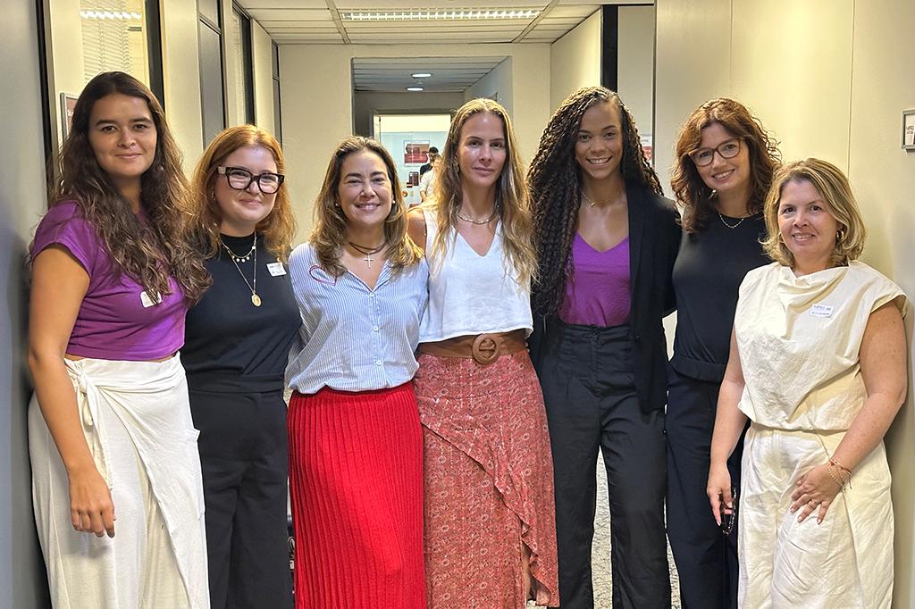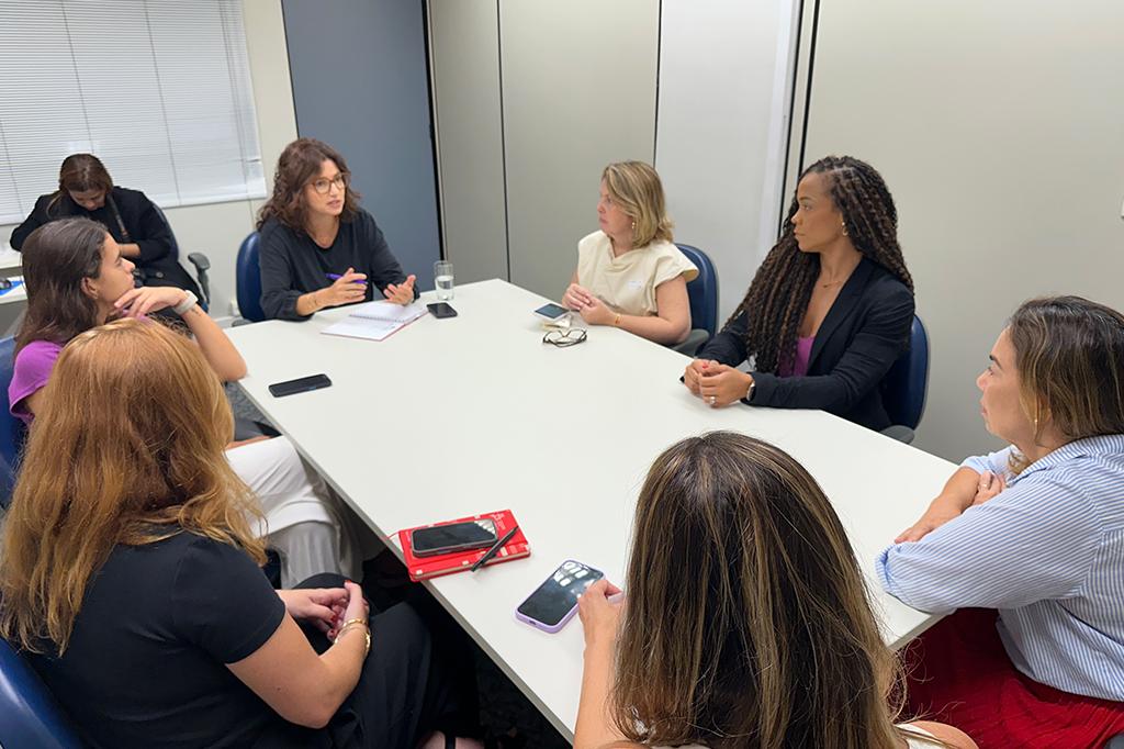 Participaram da reunião a subcoordenadora do CAO VD/MPRJ, Eyleen Marenco; a secretária de Estado da Mulher, Heloisa Aguiar; a subsecretária Giulia Luz; e a coordenadora de comunicação, Flavia Junqueira; além da secretária de Políticas Públicas para Mulheres do município, Mariana Xavier, e da coordenadora de Eventos e Cultura, Antonia Violeta.