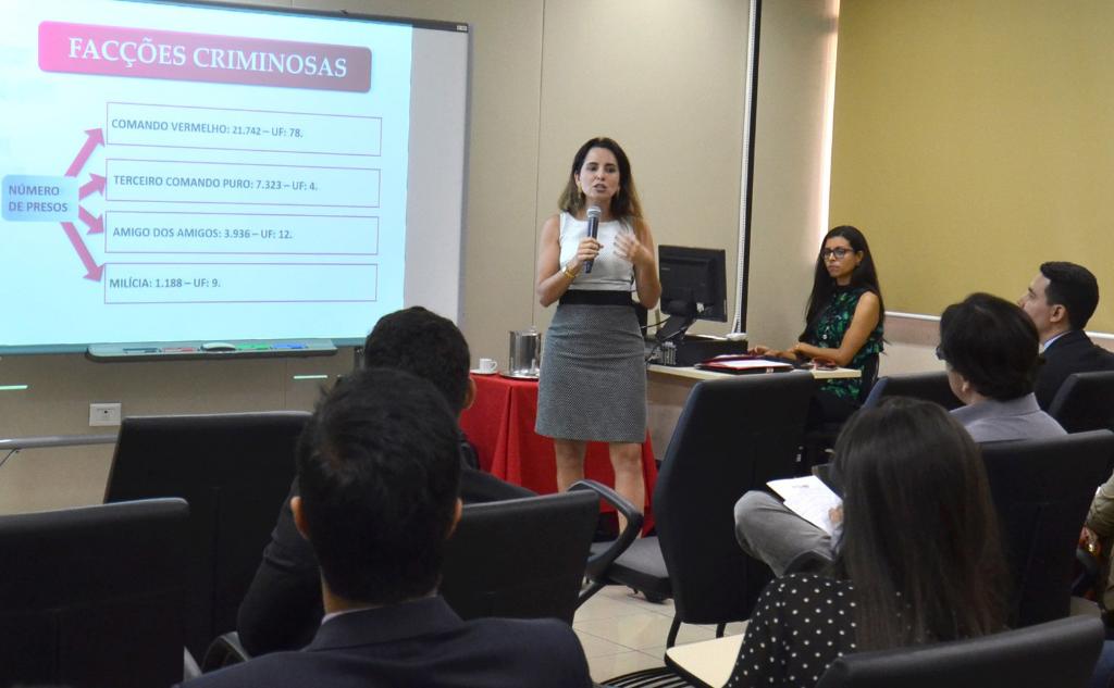 Durante a palestra, Andrezza Cançado traçou um panorama das facções criminosas com foco na área de Execução Penal. “Procurei esclarecer a importância da análise do sistema prisional como forma de aprimorar a segurança pública e, ao mesmo tempo, respeitar os direitos dos internos”, disse.
