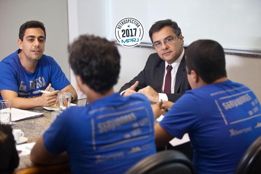 O procurador-geral de Justiça, Eduardo Gussem, realizou, nesta quinta-feira (9/2), sua primeira reunião formal com representantes da Associação dos Servidores do Ministério Público do Estado do Rio de Janeiro (Assemperj) e do Sindicato dos Servidores do Ministério Público do Estado do Rio de Janeiro (Sindsemp-RJ).