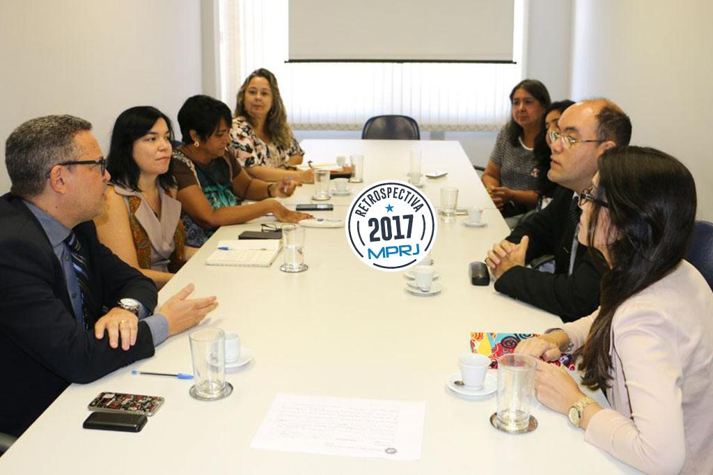 Os coordenadores do Centro de Apoio Operacional das Promotorias de Justiça de Violência Doméstica contra a Mulher e Núcleo de Gênero, Lúcia Iloizio, e do Centro de Apoio Operacional das Promotorias de Justiça de Proteção ao Idoso e à Pessoa com Deficiência, Luiz Cláudio Carvalho de Almeida, receberam, nesta quinta-feira (9/02), na sede do MPRJ, representantes das Comissões dos Direitos da Mulher e da Comissão de Defesa dos Direitos da Pessoa com Deficiência da OAB/RJ. Na pauta estava a elaboração de ações conjuntas para combater a violência contra a mulher com deficiência.
